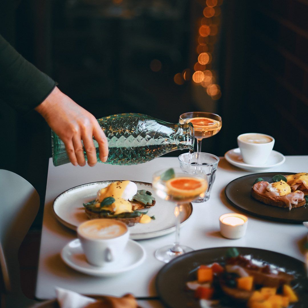 The café focuses on high-quality craft coffee, in partnership with local Icelandic roasters like Kaffibrugghúsið, and also serves specialty tea such as matcha from MOYA. Breakfast and brunch are available all day every day with freshly prepared dishes like sourdough bread, eggs Benedict, avocado toast, fish soup, and a variety of light lunch options that blend Icelandic and international flavors.